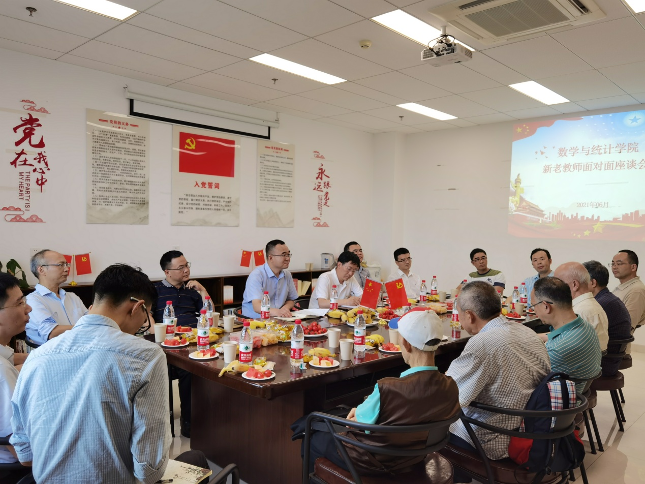 6月29日下午,数学与统计学院党委组织新老教师面对面座谈会,邀请“光荣在党50年”的老同志曹泳吴和朱金明,与退休教师、新进教师和骨干教师座谈交流。